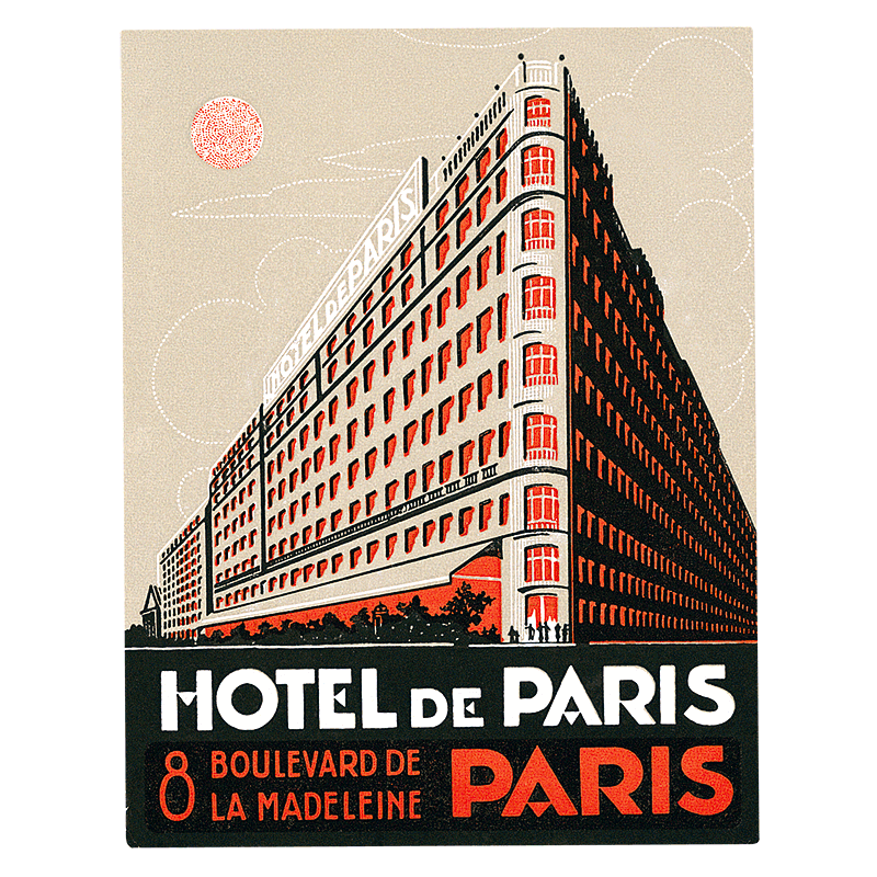 20 Large die cut stickers, boxed.This box of 20 individual peel and stick luggage labels are suitable for scrapbooking, decoupage, gift wrapping and, of course the adornment of old trunks and luggage. Paris is, for many travelers, the ultimate destination. The lovely city by the Seine symbolizes romance, adventure, antiquity, beauty, sensuality, sophistication, history and tradition more fully than any other. Its hotels are many and fabulous, as befits such a mythic locale. Our selection includes Parisian hotels existing and defunct, including The Astor, The Trianon, The Robler, The Scribe and more.