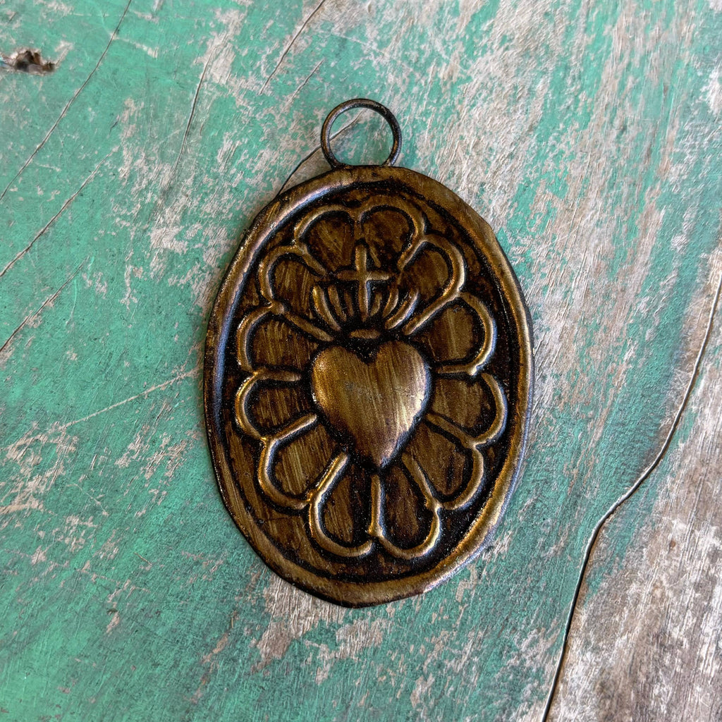 Lightweight medallions with beautiful sacred hearts and religious images! Perfect to wear on a necklace or add to a purse charm.