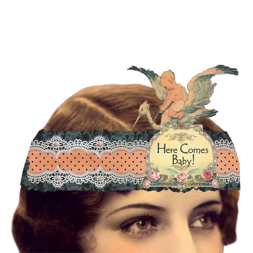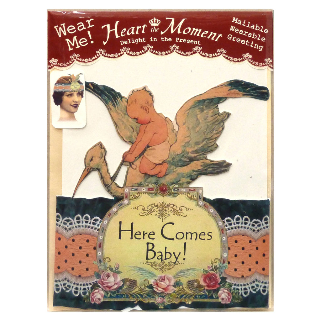 Greeting Card with Tiara, Here Comes Baby, Stork