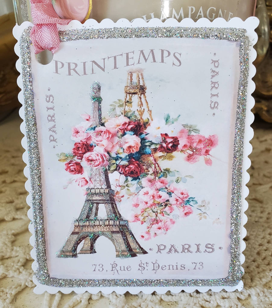 This is a lovely Paris Eiffel Tower Printemps n Roses gift tag keepsake with just the right amount of glitter bling. It makes a lovely add on to a gift or it becomes the gift keepsake. All our tags are made with heavy cardstock and are four layers thick so they are very durable. They come individually wrapped.