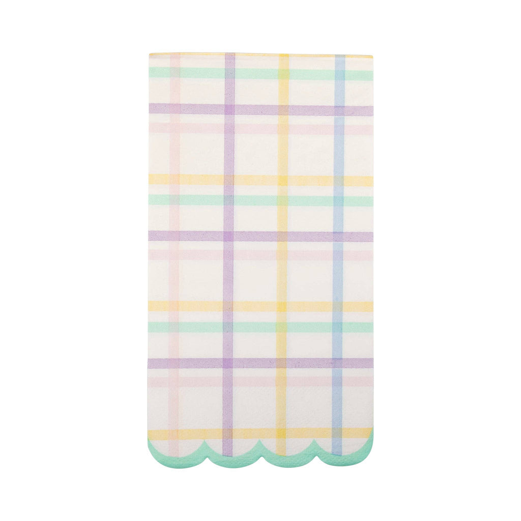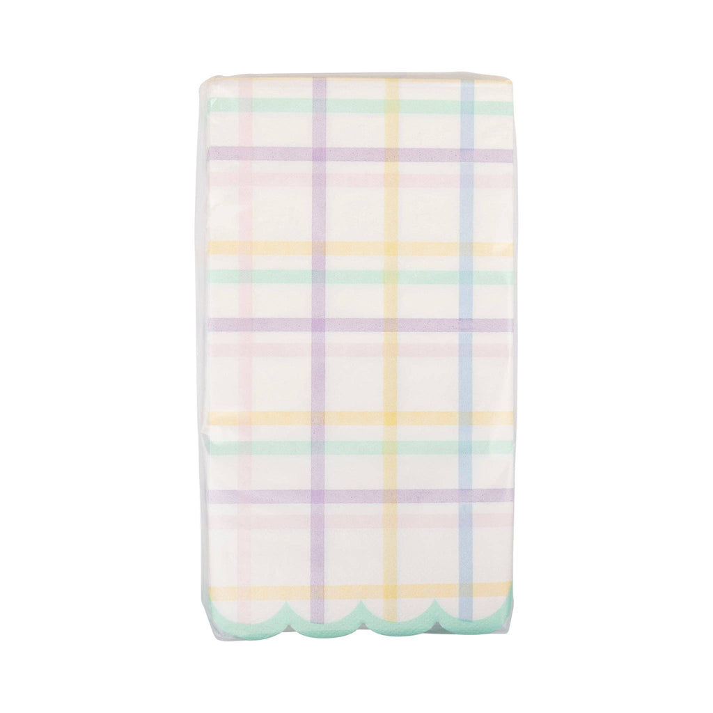 Get ready to add a pop of spring to your hosting game with this Multi Plaid Scallop Guest Napkin. This playful paper napkin features a colorful plaid pattern, perfect for any gathering. Add a fun touch to your next event! • includes 24 paper napkins • 4.25" x 7.75" Note: Limited Run pieces may be carried by larger platform and box locations in your area. 3 Sets Makes One Wholesale Pack
