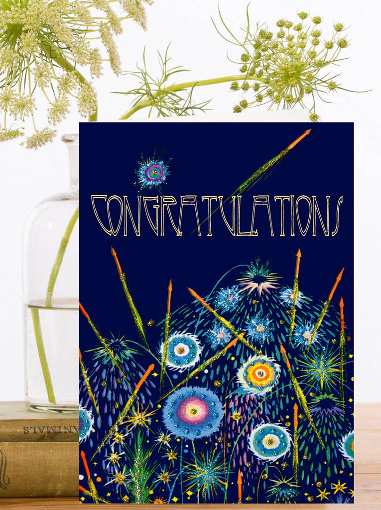 Highest quality FSC certified hand glittered design-led vintage collage greeting card, individually wrapped with an ivory envelope (5 x 7”). Recyclable sleeve. Encapsulated glitter. Blank inside. Designed & made in England.