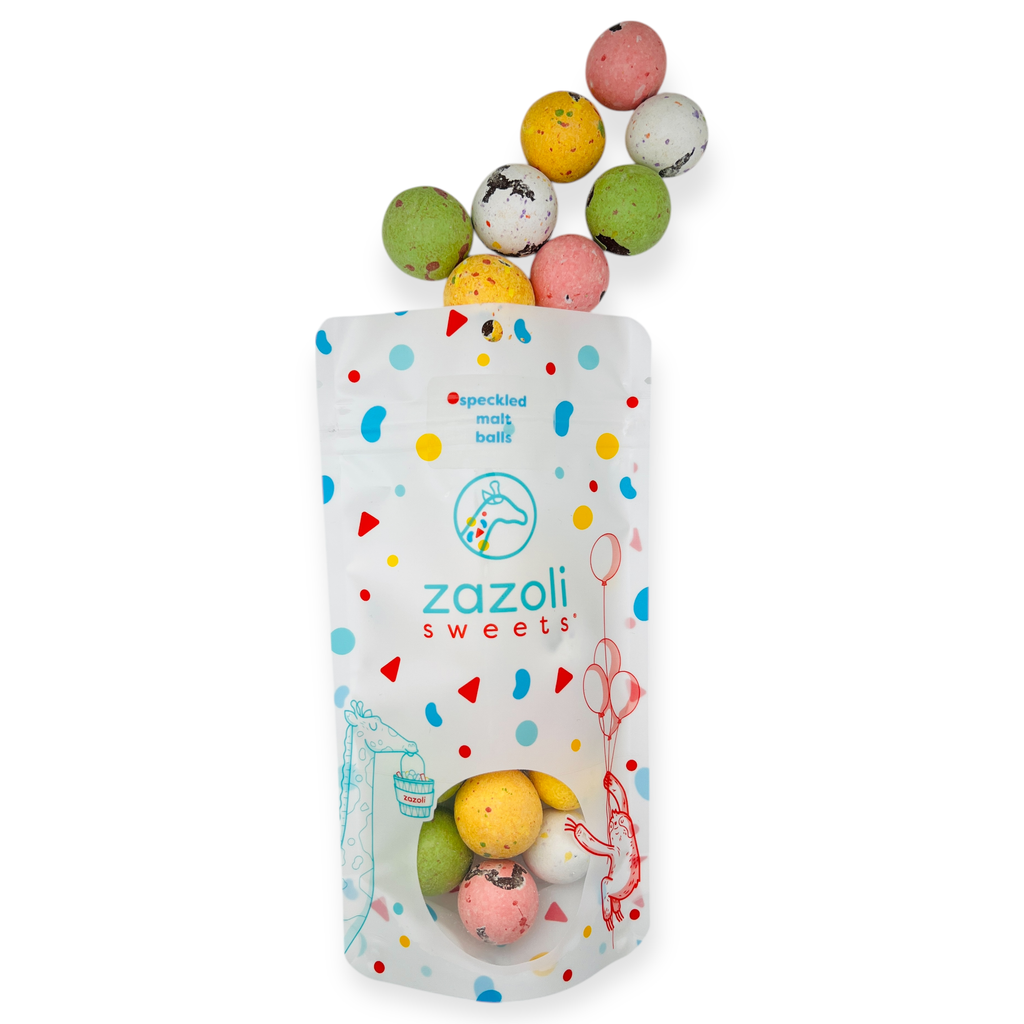 Speckled Chocolate Malt Balls Add a little of that springtime feeling any time of the year with Speckled Milk Chocolate Malted Milk Balls. These crunchy malted milk balls have a beautifully speckled pastel candy shell perfect for Easter. Net Wt. 4 oz.